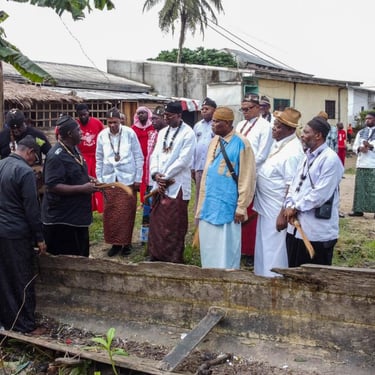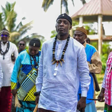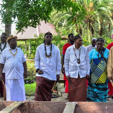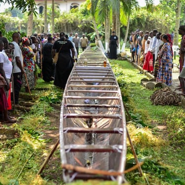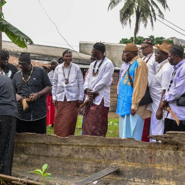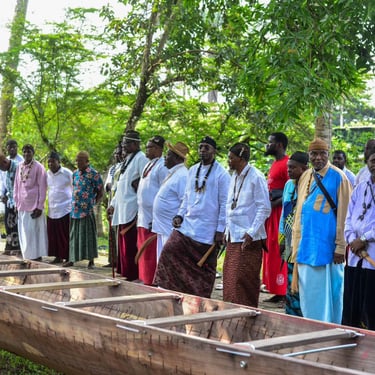 SM. Dr Louis DIN DIKA AKWA, Chef Supérieur du Canton AKWA, ROI des BONAMBELA, accompagné des chefs de villages BONAMBELA et d’une ferveur populaire immense, a célébré un événement historique : la mise à l’eau solennelle de la nouvelle pirogue de course du Royaume !