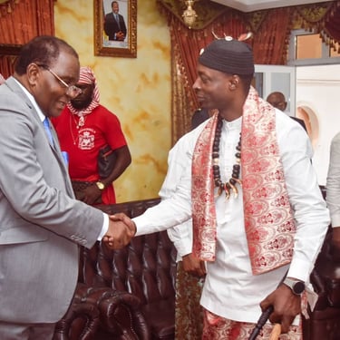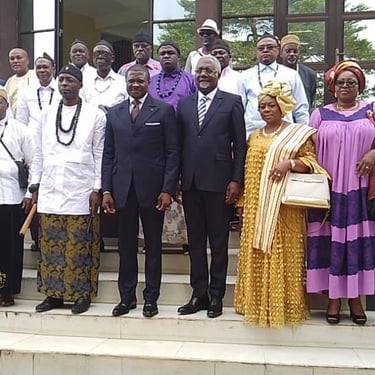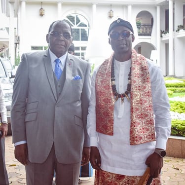 Le jeudi 29 août 2024, Sa Majesté Dr Louis DIN DIKA AKWA a été reçu en audience par le Ministre des domaines, du cadastre et des affaires foncières, M. Henri EYEBE AYISSI.